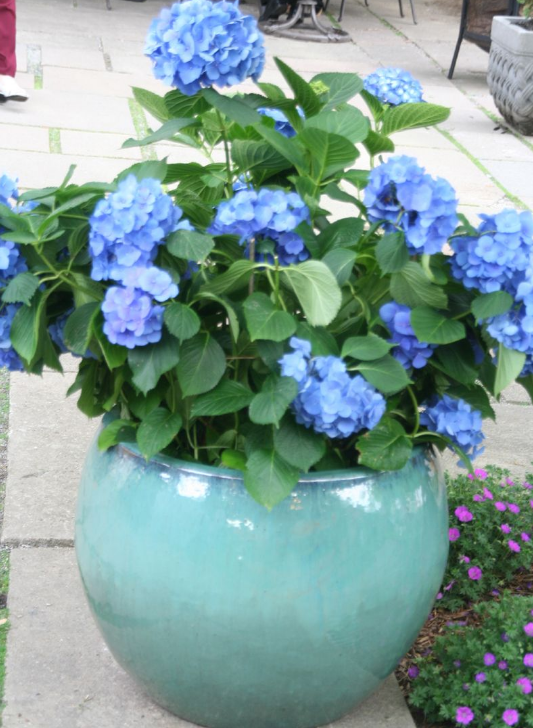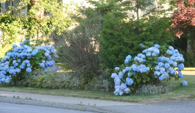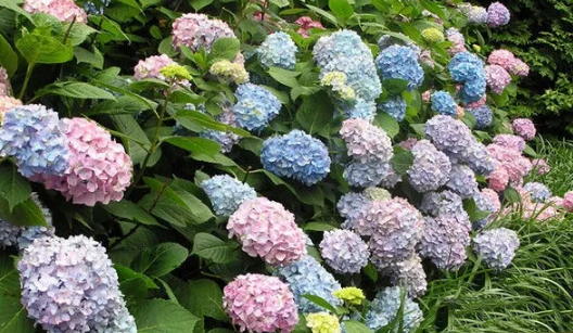 我每次到温哥华,就为那里的蓝色绣球赞叹不已。因为温哥华多雨,造成了土壤偏酸性。因此温哥华的绣球花天然的就多蓝色。而在其他多数地区,土壤一般都是偏碱性,所以多数绣球花是粉红色的。如果你喜欢蓝色绣球花,可以依照:土壤的酸碱度Soil pH 一文說的方式,改变土壤的酸碱度。一方面多施酸性肥acidfertilizer,一方面多使用有机土,包括泥苔土peat moss,改变土质。