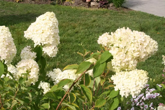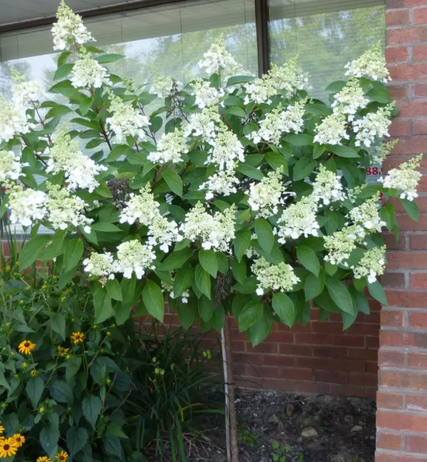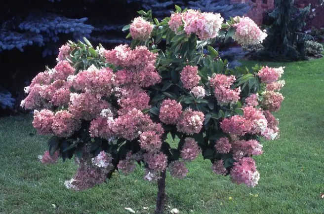 锥形绣球PeeGeeHydrangea 这一类绣球(简称PG)又叫锥形绣球Paniculata Hydrangea,原因是很多种类的Peegees 花球是锥形。一般是白色花,但在开到中期时有时会出现粉红色,非常可观。花朵极大,最大达到一尺半长。