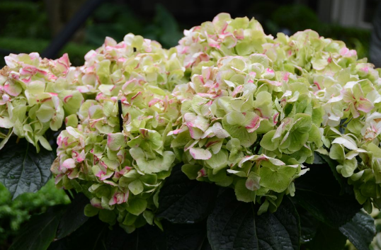 至于橡叶绣球 Oakleaf hydrangea更无须大剪,只要将已谢的花,及枯损的枝剪去就好。不过Mophead hydrangea 大花绣球中有一类“EndlessSummer”,也就是everbloomers (任何时间都开花的意思),就可以在任何时间修剪,都会开花,购买时最好问清楚。买花时最好都保留名牌,非常重要。(下:一种新的颜色的绣球花)