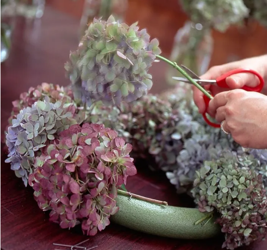 绣球花做干花有很多方式: